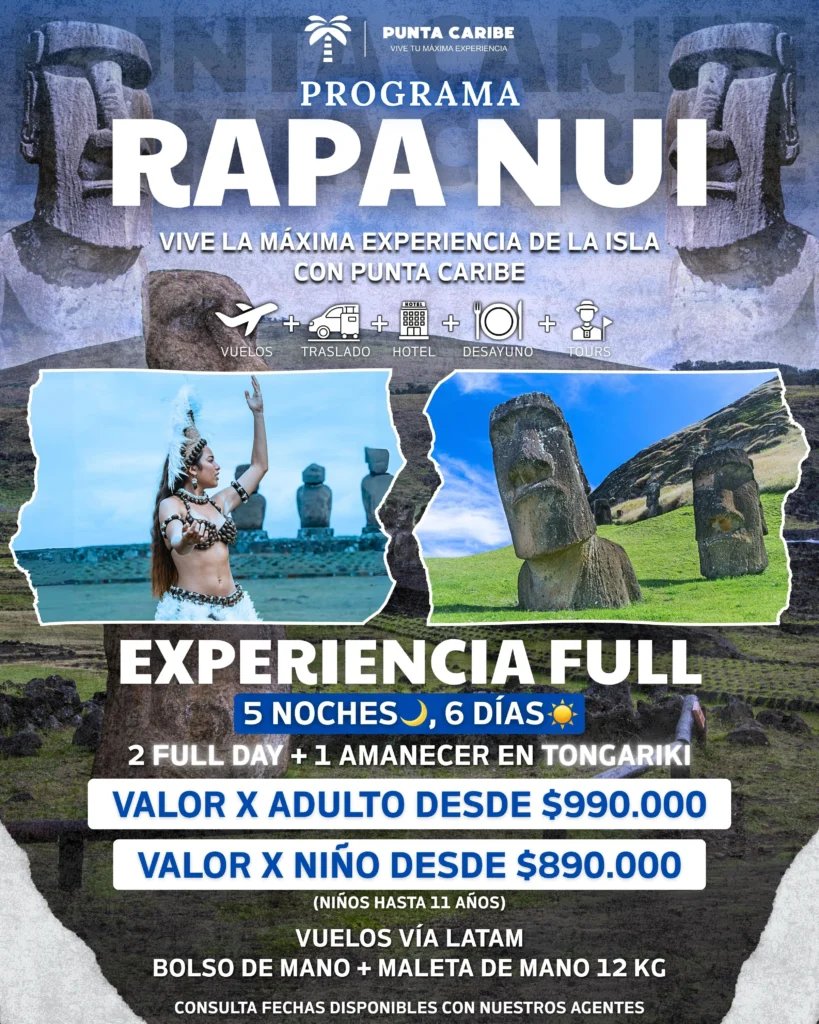 Prepárate para vivir Rapa Nui como nunca antes. Con nuestra Experiencia FULL, te llevamos a explorar en profundidad los tesoros arqueológicos, paisajes volcánicos y tradiciones...
