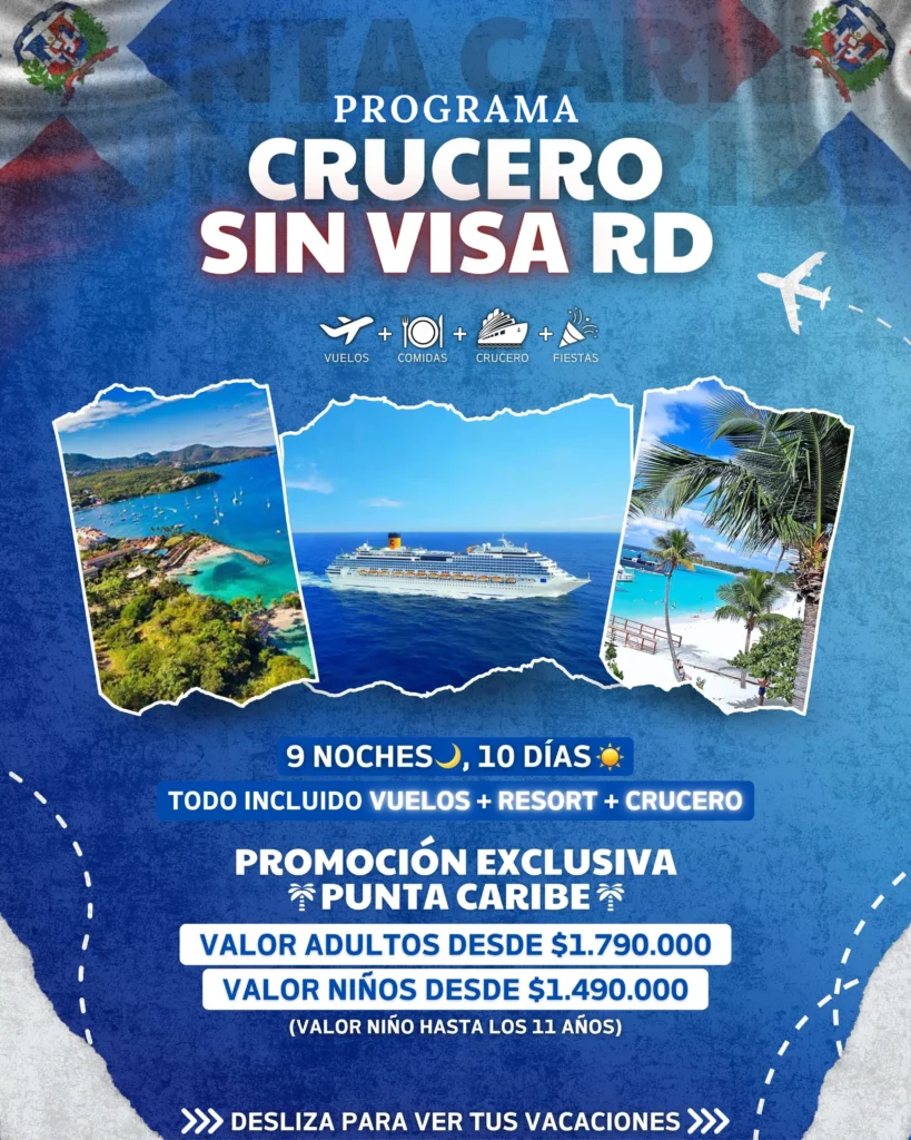 Disfruta unas vacaciones inolvidables con el Programa de Crucero sin Visa desde República Dominicana, que incluye vuelos ida y vuelta desde Santiago de Chile a...